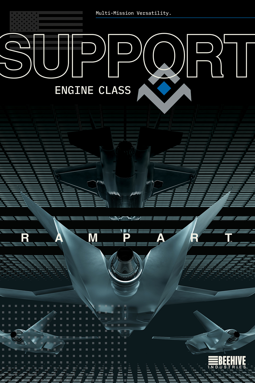 Swarm, strike, support, and stealth. We introduced the Beehive engine class system with a visual campaign built to hit like a hammer and burn into memory.